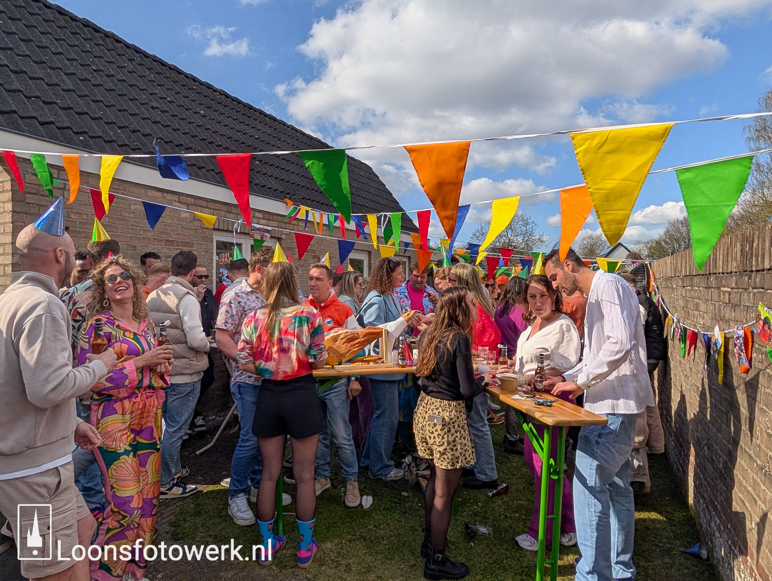 Er zit een 20 persoons kruishangtafel in T' Smidje die buiten opgesteld kan worden bij mooi weer of meer gasten